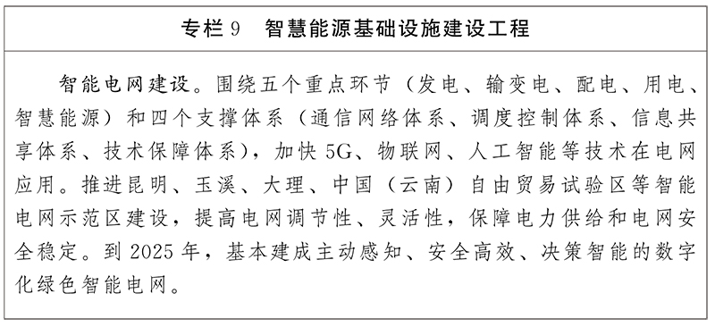 建設智能電網示范區(qū),推進電源、電網、負荷、儲能高效互動、動能電力協(xié)同互補、用能需求智能調控,精準匹配電力供需,提升電力系統(tǒng)平衡調節(jié)能力。依托文山等全省電力負荷中心,提升智慧電網能源負載和優(yōu)化調度能力。建設能源數(shù)據傳輸網絡和云南綠色能源大數(shù)據中心,聯(lián)通各地各部門以及有關能源企業(yè),及時、準確掌握全省能源運行數(shù)據。大力推廣“多表合一”,實現(xiàn)電、氣、熱等多種能源消費信息的遠程感知、傳輸匯聚。引導省內煤炭企業(yè)積極發(fā)展現(xiàn)代化智能化煤礦,優(yōu)化井下布局、生產系統(tǒng),推廣新型生產模式,提升綜采綜掘數(shù)字化水平。
