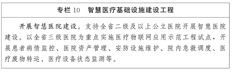 完善智慧醫(yī)療和養(yǎng)老服務設施。推進智慧醫(yī)院建設,支持全省二級及以上公立醫(yī)院開展診療設備網格化、移動化、智能化改造。持續(xù)推進云南省智慧醫(yī)保平臺建設。建設智慧養(yǎng)老服務平臺,加快智慧養(yǎng)老服務終端設備的應用和統(tǒng)一接入,實現(xiàn)養(yǎng)老大數(shù)據采集和深入分析。