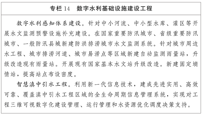 數(shù)字水利基礎設施建設。綜合運用地基水文水質監(jiān)測等手段,構建雨情、水情、工情、水資源、水環(huán)境、水生態(tài)等水信息的感知網絡。建設數(shù)字水利大數(shù)據中心,形成數(shù)據資產管理體系,建設智慧水利調度與監(jiān)管、智慧防汛抗旱等系統(tǒng),推動數(shù)據資源跨部門共享交換。