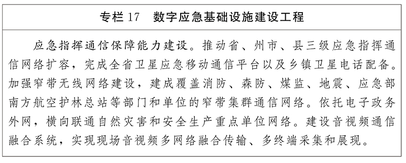 打造智慧應急基礎設施。加快應急指揮通信網絡升級改造,實現(xiàn)多部門協(xié)同、各層級貫通。融合物聯(lián)感知、視頻感知等手段,實現(xiàn)對安全生產高危行業(yè)領域立體化、無盲區(qū)動態(tài)監(jiān)測。建立全省應急指揮信息系統(tǒng),加快推進區(qū)域性全災種應急指揮中心建設。打造覆蓋全省的應急廣播體系。