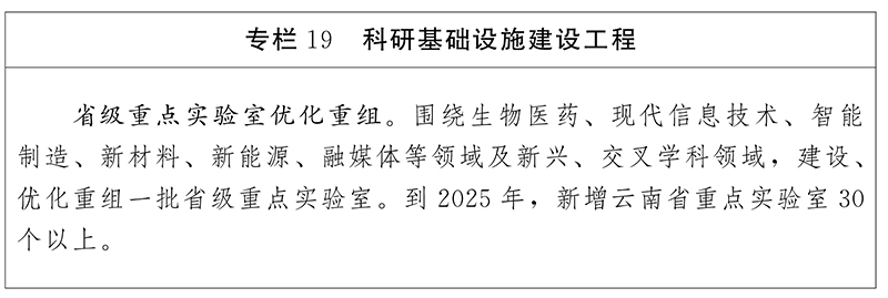 ——創(chuàng)新基礎設施建設取得新成效。圍繞高原特色農業(yè)、有色冶金、稀貴金屬、能源、煙草、生物醫(yī)藥等優(yōu)勢產業(yè)領域,新建一批國家級、省級重點實驗室以及技術創(chuàng)新中心、工程研究中心,全省科研創(chuàng)新支撐能力顯著增強。
