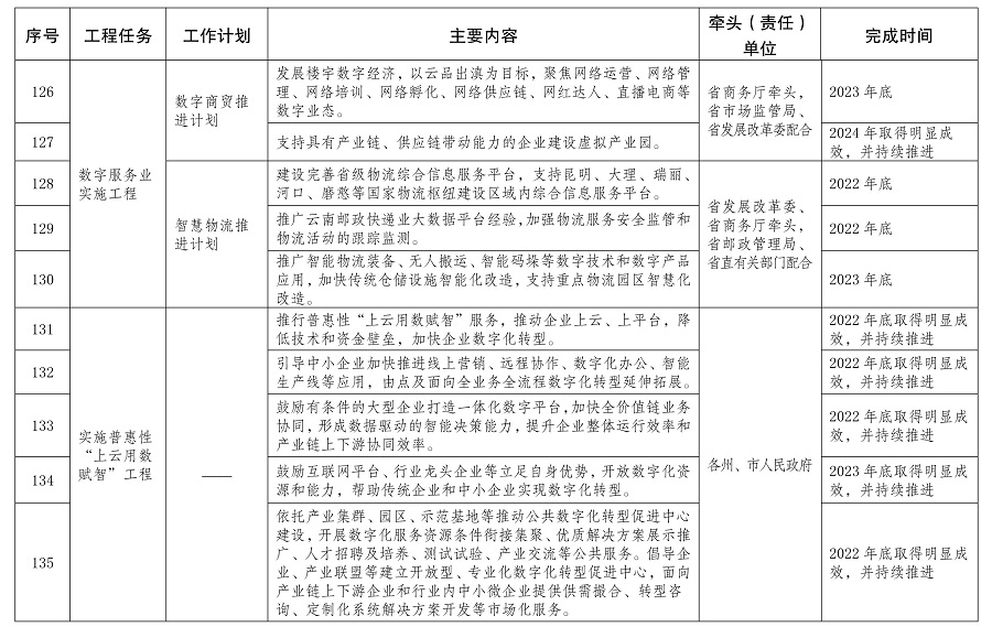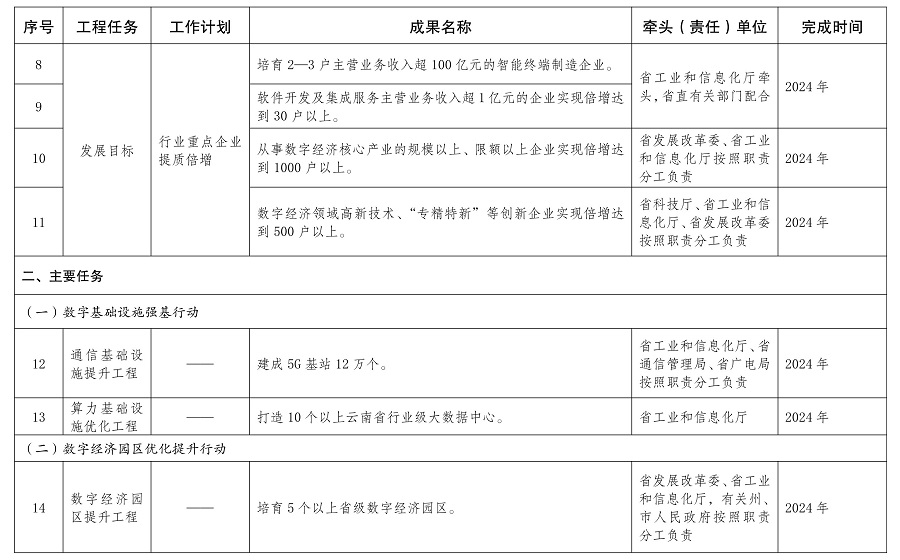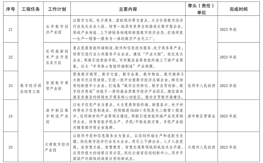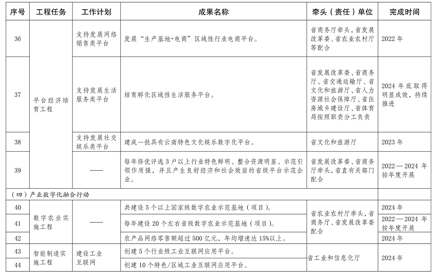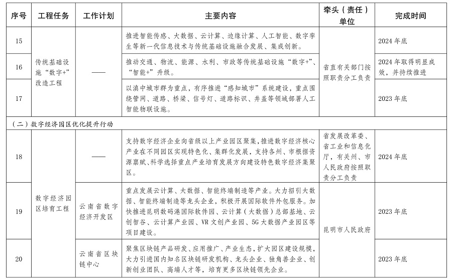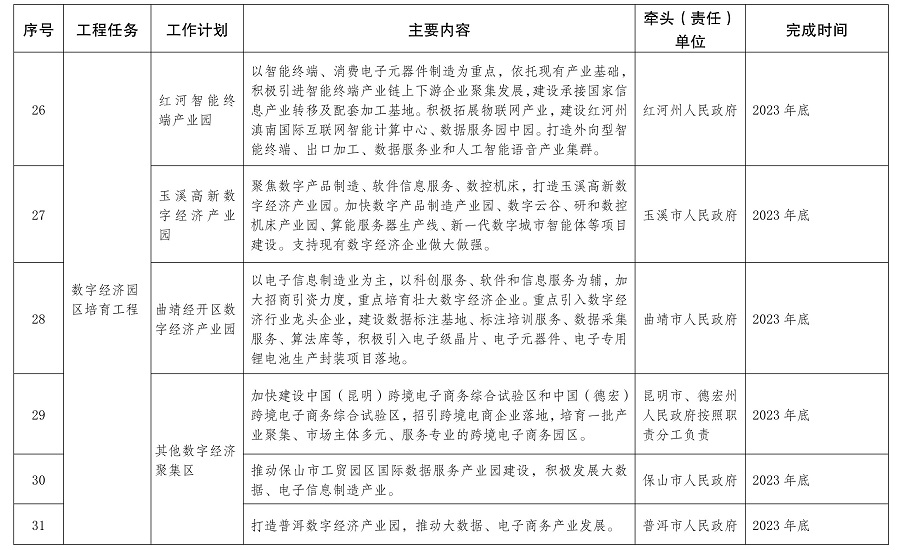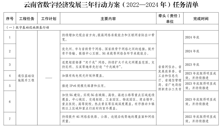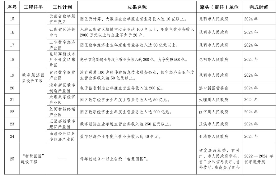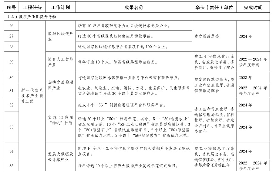 附件:1.云南省數(shù)字經(jīng)濟(jì)發(fā)展三年行動(dòng)方案(2022—2024年)任務(wù)清單