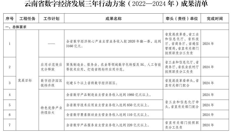 2.云南省數(shù)字經(jīng)濟(jì)發(fā)展三年行動(dòng)方案(2022—2024年)成果清單