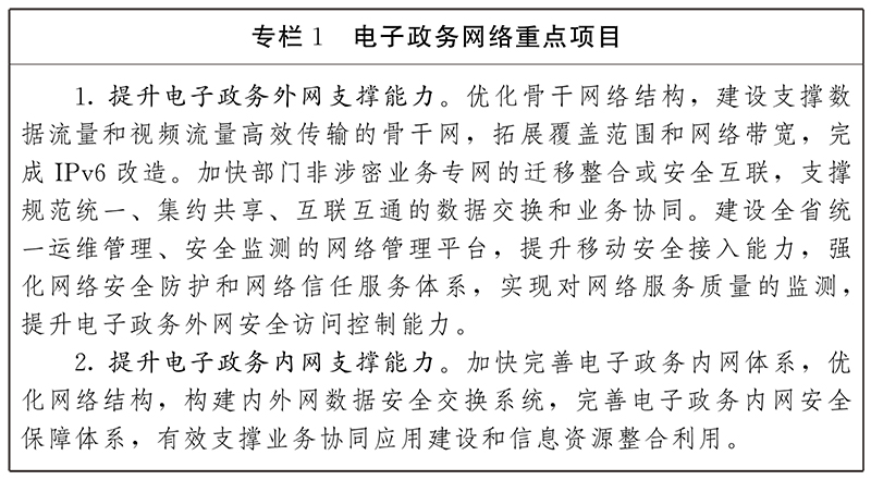 建成“橫向到邊、縱向到底”、支持IPv6(互聯(lián)網(wǎng)協(xié)議第六版)的電子政務(wù)外網(wǎng),同步建設(shè)網(wǎng)絡(luò)安全基礎(chǔ)設(shè)施,形成全省架構(gòu)統(tǒng)一、運(yùn)行高效、安全可靠、彈性調(diào)度的新型電子政務(wù)外網(wǎng)體系,推進(jìn)5G(第五代移動通信技術(shù))、區(qū)塊鏈等新技術(shù)在電子政務(wù)外網(wǎng)領(lǐng)域應(yīng)用,有效支撐跨層級、跨區(qū)域、跨部門的網(wǎng)絡(luò)互通、數(shù)據(jù)共享、應(yīng)用協(xié)同。拓展電子政務(wù)外網(wǎng)覆蓋范圍、加快網(wǎng)絡(luò)帶寬擴(kuò)容,逐步實(shí)現(xiàn)萬兆到州市、千兆到縣市區(qū)、百兆到鄉(xiāng)鎮(zhèn)(街道)全覆蓋,村(社區(qū))按需接入,2025年底實(shí)現(xiàn)80%行政村覆蓋;推動各地各部門按照“應(yīng)接盡接”原則接入電子政務(wù)外網(wǎng)。提升電子政務(wù)內(nèi)網(wǎng)支撐能力,對政務(wù)內(nèi)網(wǎng)骨干鏈路帶寬進(jìn)行擴(kuò)容,按需開展縣級以下部門安全接入政務(wù)內(nèi)網(wǎng),完善電子政務(wù)內(nèi)網(wǎng)綜合運(yùn)維管理體系,提升運(yùn)維保障能力。強(qiáng)化電子政務(wù)網(wǎng)絡(luò)綜合安全防護(hù),健全統(tǒng)一信任服務(wù)體系,推進(jìn)電子政務(wù)內(nèi)網(wǎng)、外網(wǎng)間數(shù)據(jù)安全交換。加快推進(jìn)部門業(yè)務(wù)專網(wǎng)(含國家部委業(yè)務(wù)專網(wǎng)的省級及以下部分)向電子政務(wù)內(nèi)網(wǎng)、外網(wǎng)遷移整合或安全互聯(lián)。