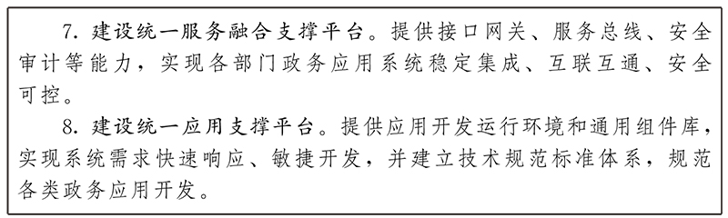推進(jìn)數(shù)字化共性應(yīng)用集約化建設(shè),為各地各部門提供身份認(rèn)證、電子證照、電子印章、電子檔案、便民支付、服務(wù)熱線、服務(wù)融合等公共應(yīng)用支撐。
