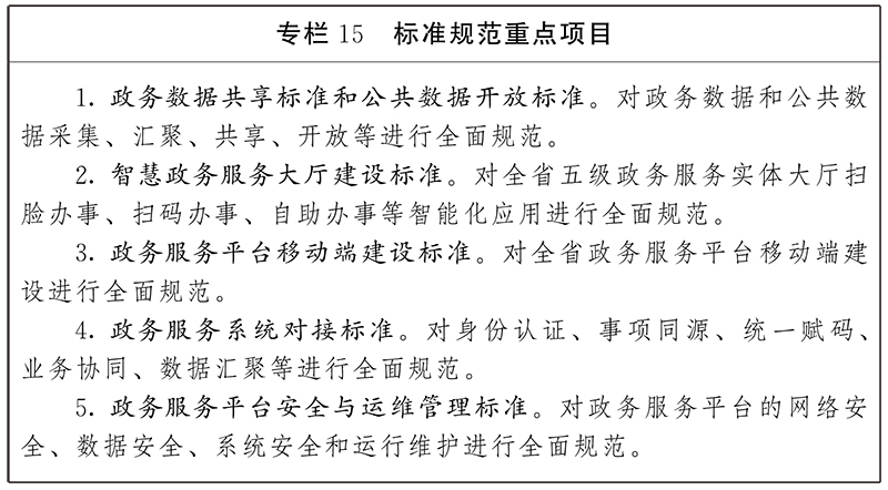 2.制定政務(wù)服務(wù)業(yè)務(wù)標(biāo)準(zhǔn)。研究制定政務(wù)服務(wù)事項標(biāo)準(zhǔn)化、智能政務(wù)服務(wù)大廳建設(shè)、政務(wù)服務(wù)移動端建設(shè)、政務(wù)服務(wù)系統(tǒng)對接等標(biāo)準(zhǔn)規(guī)范。制定政務(wù)服務(wù)大廳業(yè)務(wù)手冊、綜合窗口行為規(guī)范、“跨省通辦”操作規(guī)程等,提升政務(wù)服務(wù)標(biāo)準(zhǔn)化、規(guī)范化、便利化水平。