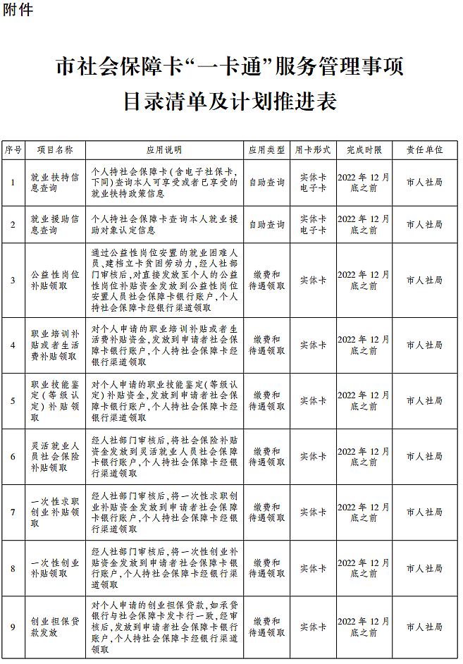 附件:市社會(huì)保障卡“一卡通”服務(wù)管理事項(xiàng)目錄清單及計(jì)劃推進(jìn)表附件