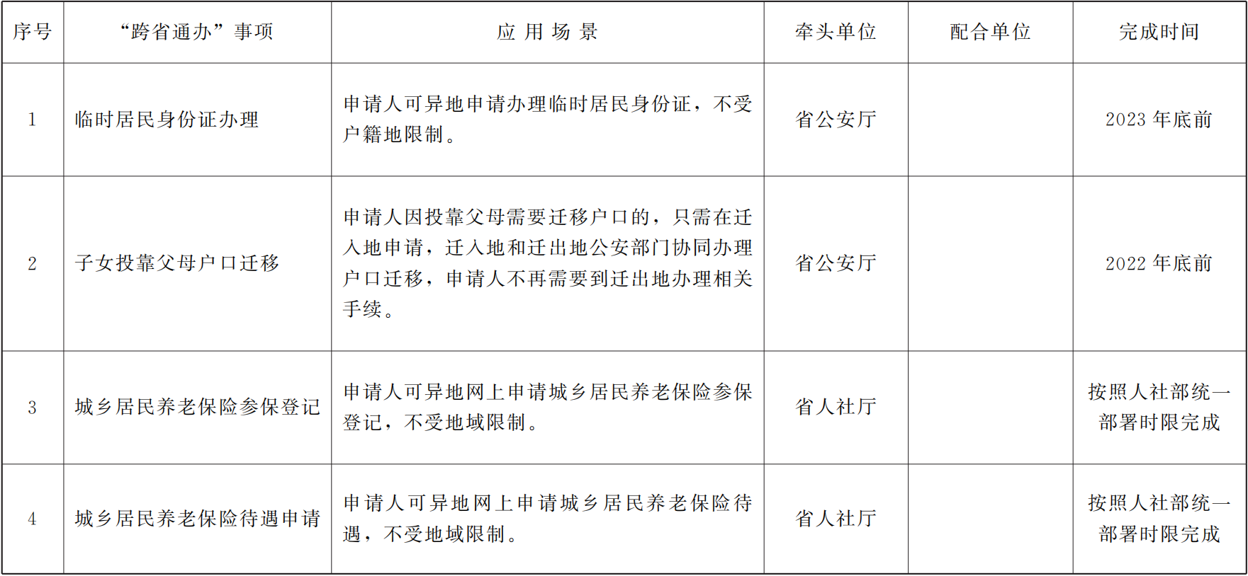 為認真貫徹落實《國務院辦公廳關于擴大政務服務“跨省通辦”范圍進一步提升服務效能的意見》(國辦發(fā)〔2022〕34號,以下簡稱“國辦發(fā)34號文件”),積極推進更多高頻政務服務事項“跨省通辦”,進一步提升服務效能,增強企業(yè)群眾異地辦事便捷度,有力支撐經(jīng)濟社會高質(zhì)量發(fā)展,現(xiàn)將有關事項通知如下。