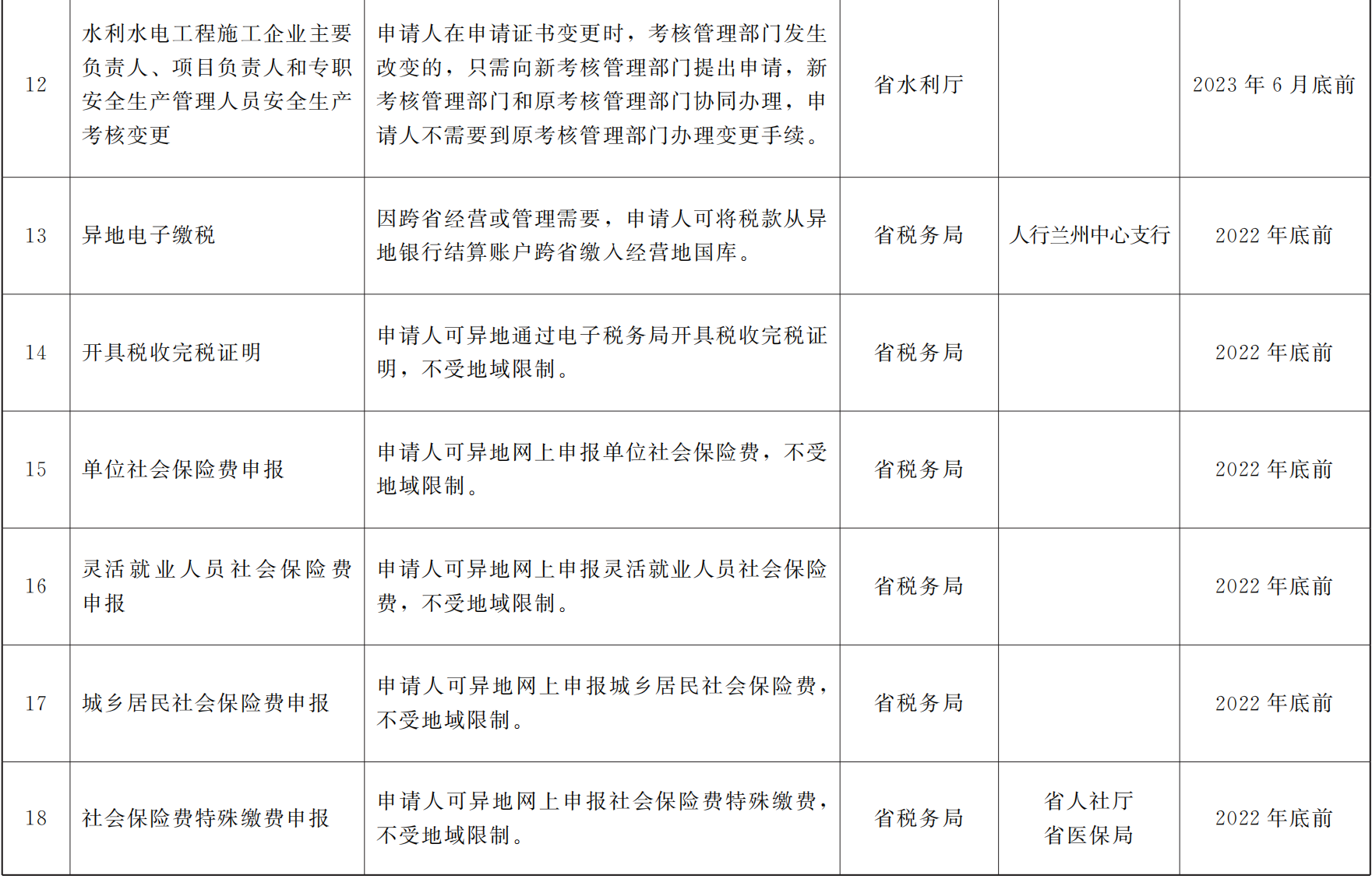 一、高標準推進實施新增“跨省通辦”事項。各地各有關部門要在繼續(xù)深入落實《國務院辦公廳關于加快推進政務服務“跨省通辦”的指導意見》(國辦發(fā)〔2020〕35號)的基礎上,按照國辦發(fā)34號文件部署要求,以利企便民為導向,細化具體推進落實舉措,不斷擴大“跨省通辦”事項范圍。省直有關部門和中央在甘有關單位要認真對照政務服務“跨省通辦”新增任務清單(見附件)部署的22項新增“跨省通辦”事項,嚴格按照明確的應用場景、責任分工和完成時限抓好落實;要主動加強與國務院有關部門的溝通銜接,按照國家層面統(tǒng)一部署要求,規(guī)范事項名稱、辦理流程等要素,同步指導市級行業(yè)部門將相關政務服務事項納入本級政務服務中心辦理。各市(州)、蘭州新區(qū)要聚焦關中平原、蘭州—西寧等城市群、都市圈一體化發(fā)展、主要勞務輸入輸出地協(xié)作、毗鄰地區(qū)交流合作等需求,積極與兄弟城市開展政務服務“跨省通辦”合作,科學推動醫(yī)療、養(yǎng)老和市場主體登記注冊等更多與企業(yè)發(fā)展、群眾生活密切相關的高頻政務服務事項“跨省通辦”;要繼續(xù)加強與相關省份對接協(xié)作,擴大“絲路通辦”、黃河流域省會城市商事登記“跨省通辦”等合作范圍。