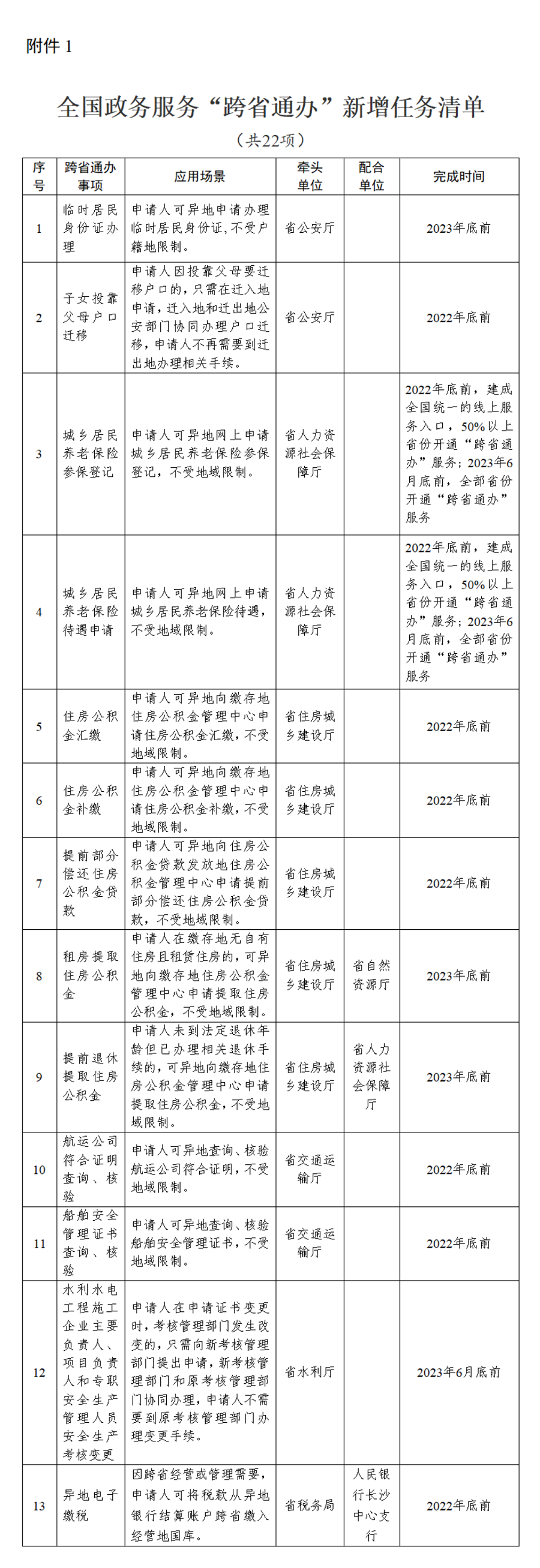 附件:1.全國政務服務“跨省通辦”新增任務清單
