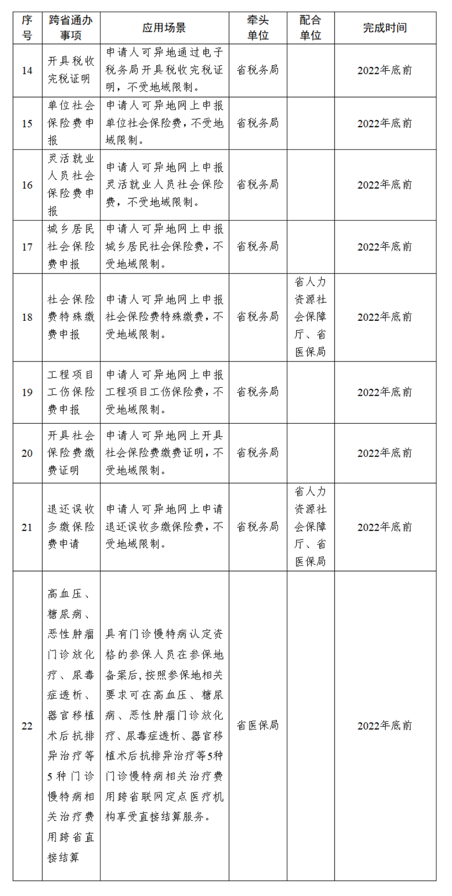 為擴大我省政務服務“跨省通辦”范圍,進一步提升服務效能,更好滿足企業(yè)和群眾異地辦事需求,根據(jù)《國務院辦公廳關于擴大政務服務“跨省通辦”范圍進一步提升服務效能的意見》(國辦發(fā)〔2022〕34號)要求,經(jīng)省人民政府同意,現(xiàn)就有關事項通知如下: