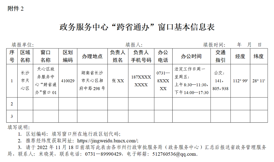 2.政務服務中心“跨省通辦”窗口基本信息表