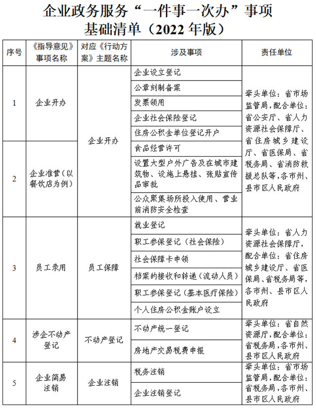 附件:1.企業(yè)政務服務“一件事一次辦”事項基礎清單(2022年版)
