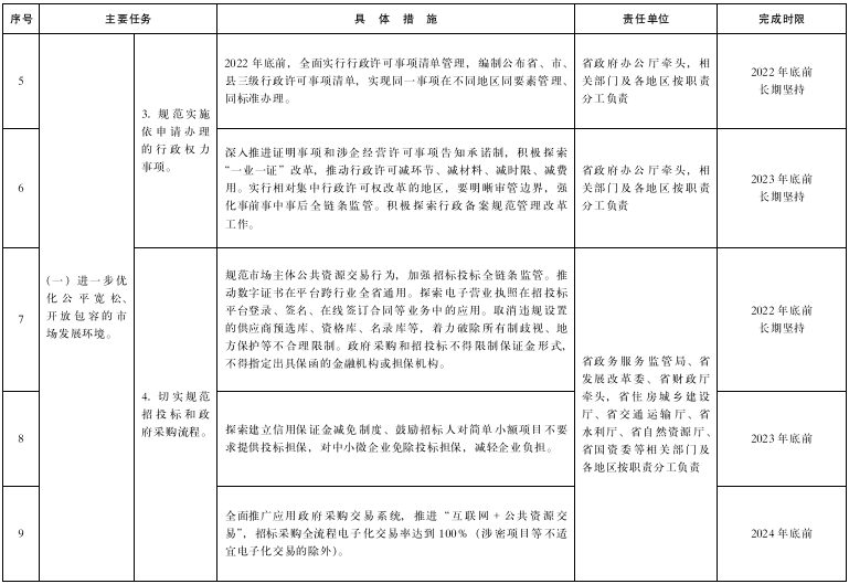 (三)規(guī)范實施依申請辦理的行政權(quán)力事項。2022年底前,全面實行行政許可事項清單管理,編制公布省、市、縣三級行政許可事項清單,實現(xiàn)同一事項在不同地區(qū)同要素管理、同標準辦理。深入推進證明事項和涉企經(jīng)營許可事項告知承諾制,積極探索“一業(yè)一證”改革,推動行政許可減環(huán)節(jié)、減材料、減時限、減費用。實行相對集中行政許可權(quán)改革的地區(qū),要明晰審管邊界,強化事前事中事后全鏈條監(jiān)管。積極探索行政備案規(guī)范管理改革工作。(省政府辦公廳牽頭,相關(guān)部門及各地區(qū)按職責分工負責)