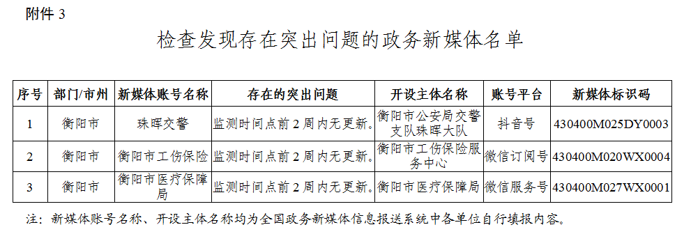 3.檢查發(fā)現(xiàn)存在突出問題的政務(wù)新媒體名單