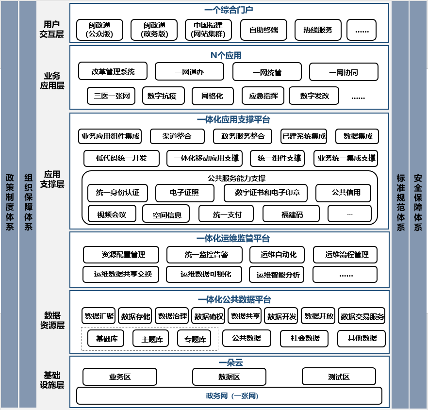 福建數(shù)字政府改革和建設(shè)實(shí)施框架如下: