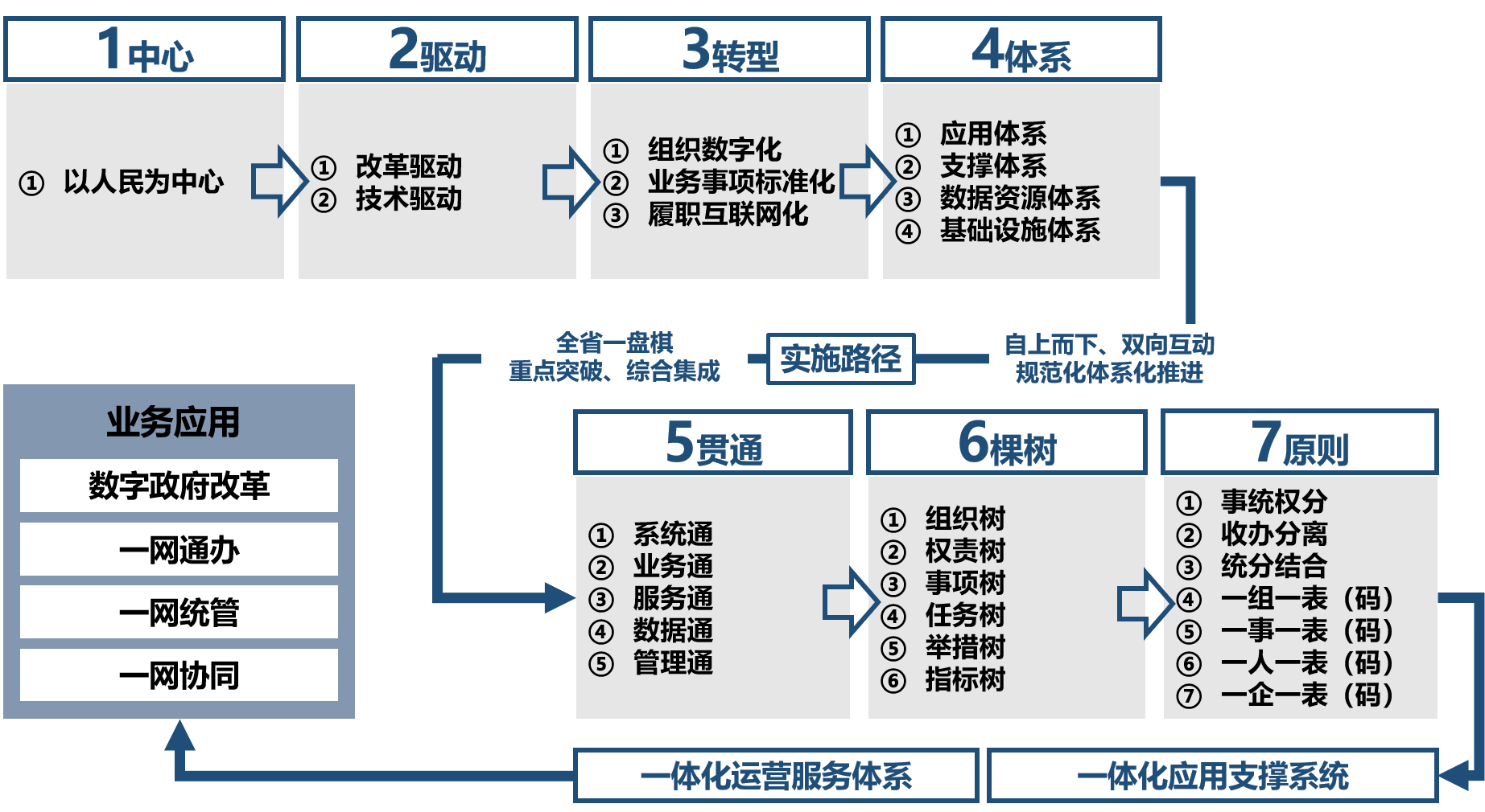 2輪驅(qū)動(dòng)——改革驅(qū)動(dòng)和技術(shù)驅(qū)動(dòng)。以政府?dāng)?shù)字化改革為核心,以技術(shù)創(chuàng)新應(yīng)用為手段,按照“全省一盤棋、上下一體化建設(shè)”的原則實(shí)施。