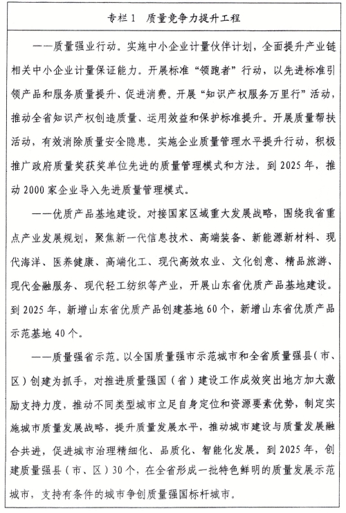?。ǘ┲饕繕恕5?025年,質量整體水平邁上新臺階,以質量促發(fā)展、保民生能力持續(xù)增強,人民群眾質量獲得感、滿意度不斷提升,質量強省建設取得突破性進展。