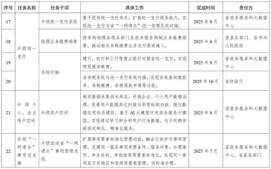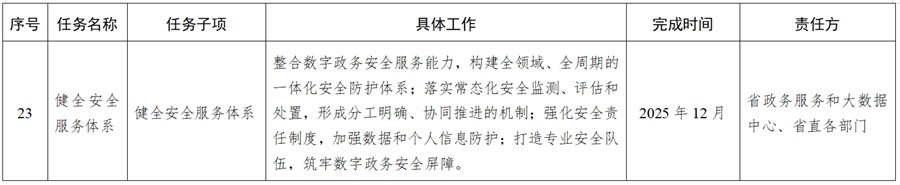 2025年12月31日前,統(tǒng)籌省級政務(wù)服務(wù)公共平臺基礎(chǔ)能力建設(shè)和保障,滿足全省數(shù)字政務(wù)公共基礎(chǔ)能力“總支撐”需求,通過完善統(tǒng)一身份認(rèn)證、電子證照、電子印章、統(tǒng)一支付、統(tǒng)一用戶中心、應(yīng)用能力開放平臺、AI大模型等基礎(chǔ)支撐能力,全面支撐全省政務(wù)服務(wù)業(yè)務(wù)應(yīng)用。整合數(shù)字政務(wù)應(yīng)用安全服務(wù)能力,實現(xiàn)集中監(jiān)控與管理,提升整體安全防護(hù)水平。