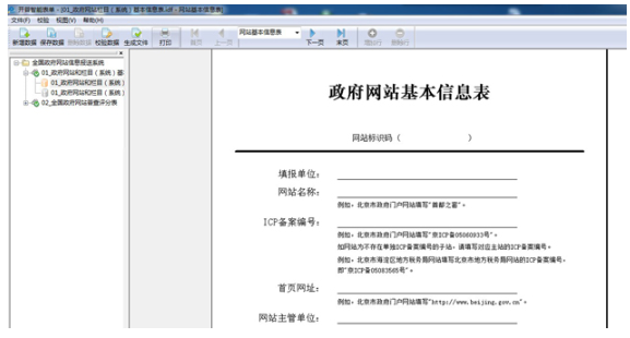 填報(bào)單位運(yùn)行客戶端軟件,打開“政府網(wǎng)站和欄目(系統(tǒng))基本信息表”并新建數(shù)據(jù),填寫政府網(wǎng)站和欄目(系統(tǒng))基本信息并保存。表單所有信息項(xiàng)均為必填項(xiàng),如確無內(nèi)容請?zhí)顚憽盁o”。