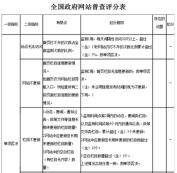 2.全國政府網(wǎng)站普查評分表