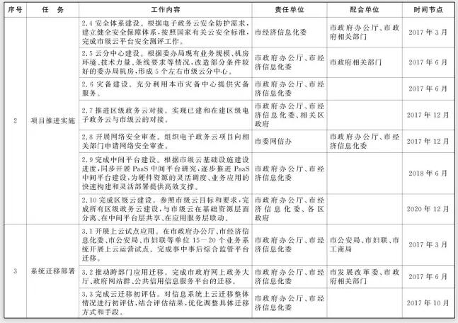 2017年6月前,完成市政府網(wǎng)上政務(wù)大廳、政府網(wǎng)站群、公共信用信息服務(wù)平臺的遷移。
