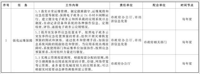 2017年2月前,完成電子政務(wù)云運(yùn)營和管理、電子政務(wù)云應(yīng)用建設(shè)、遷移和部署以及云安全體系建設(shè)等標(biāo)準(zhǔn)和規(guī)范的制定,完成突發(fā)事件應(yīng)急處置預(yù)案編制。