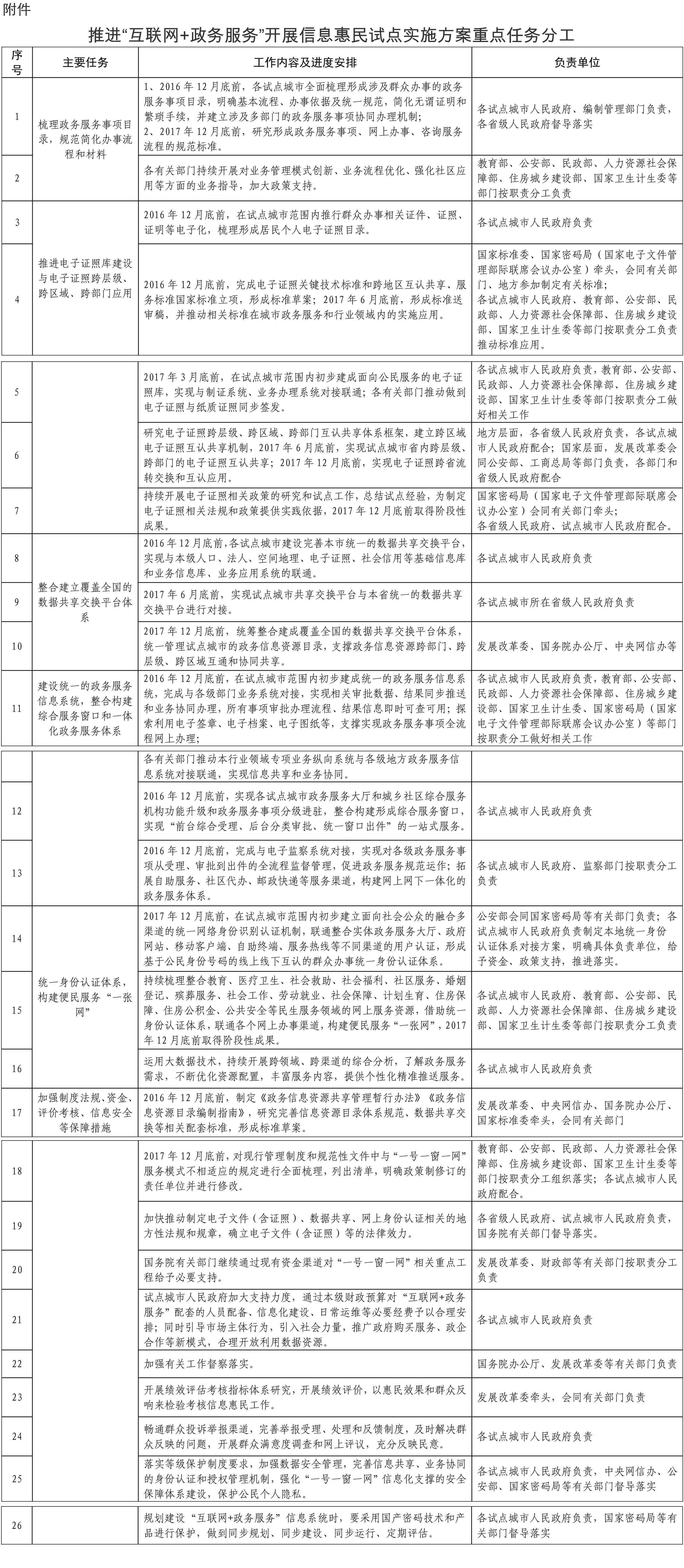 附件:推進(jìn)“互聯(lián)網(wǎng)+政務(wù)服務(wù)”開展信息惠民試點(diǎn)實施方案重點(diǎn)任務(wù)分工