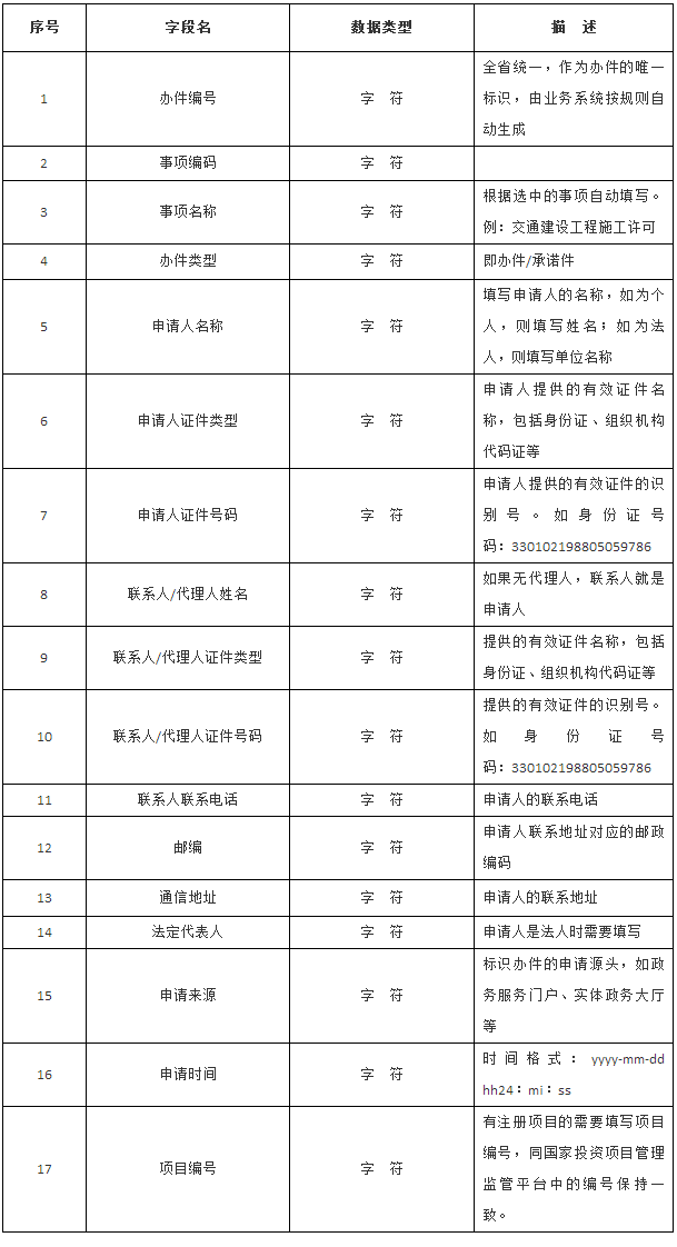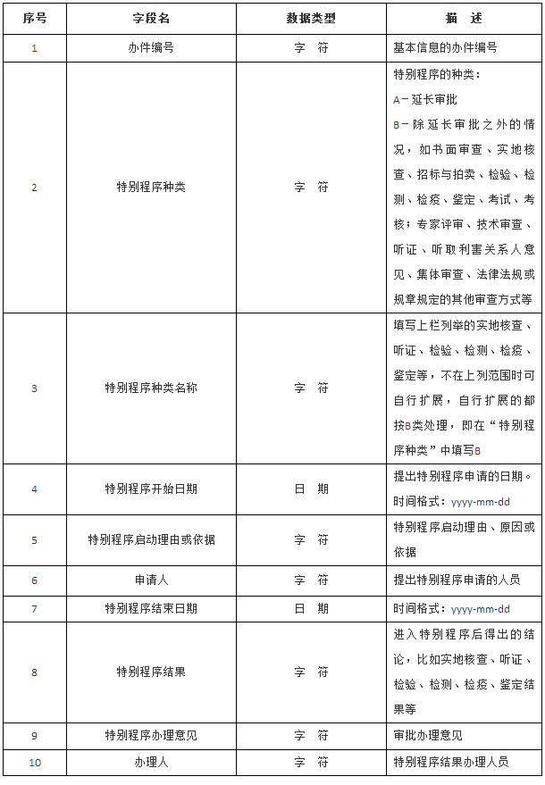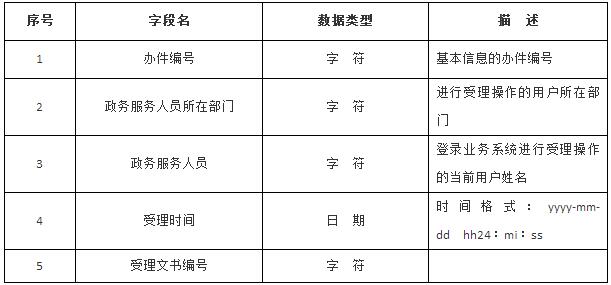 政務(wù)服務(wù)運行信息(具體見附錄三)包括申請信息、申請材料信息、受理信息、辦理環(huán)節(jié)信息、特別程序信息、辦結(jié)信息。