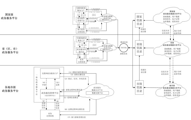 “互聯(lián)網(wǎng)+政務(wù)服務(wù)”平臺總體層級架構(gòu)和信息流架構(gòu)示意圖