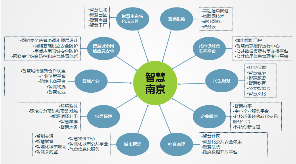 “十三五”期間,智慧南京建設(shè)的重點(diǎn)任務(wù)涵蓋基礎(chǔ)設(shè)施建設(shè)、城市級(jí)云服務(wù)平臺(tái)建設(shè)、注重民生服務(wù)、創(chuàng)新社會(huì)治理、突出網(wǎng)絡(luò)與信息安全、促進(jìn)生態(tài)宜居、做好示范區(qū)域的示范工程等方面任務(wù)。