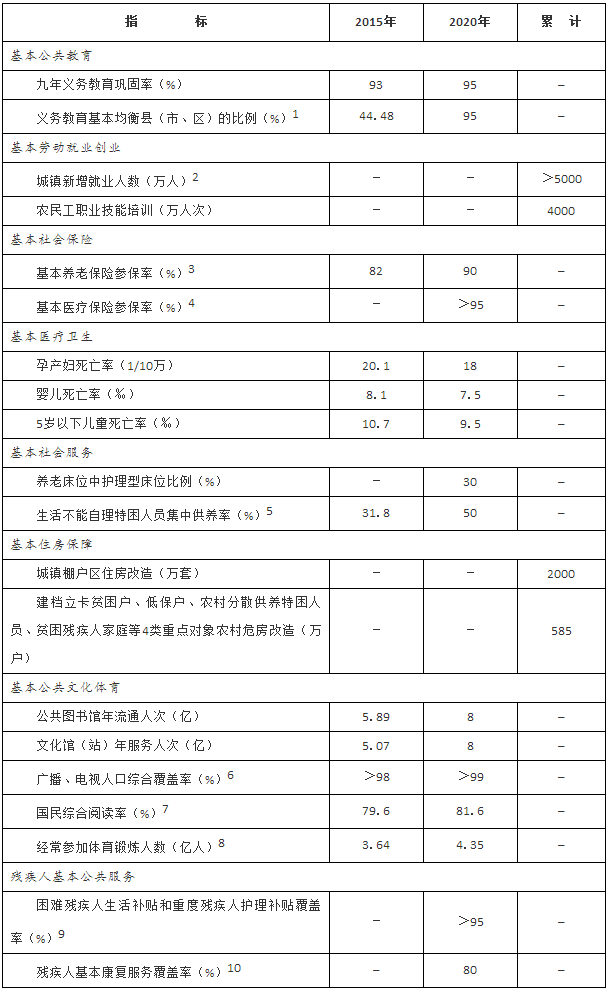“十三五”時(shí)期基本公共服務(wù)領(lǐng)域主要發(fā)展指標(biāo)