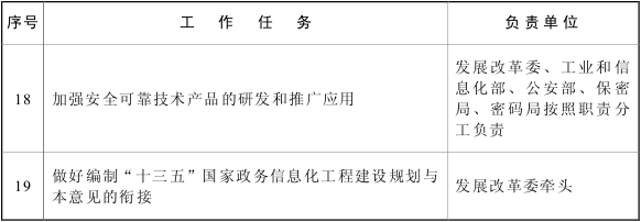 ?。ǘ┘訌?qiáng)新技術(shù)和安全可靠產(chǎn)品應(yīng)用。制定促進(jìn)云計(jì)算、大數(shù)據(jù)在電子政務(wù)應(yīng)用服務(wù)中的發(fā)展規(guī)劃和政策制度;研究制定云計(jì)算、大數(shù)據(jù)、物聯(lián)網(wǎng)、移動(dòng)互聯(lián)網(wǎng)等在電子政務(wù)應(yīng)用中的技術(shù)規(guī)范,積極推進(jìn)新技術(shù)在行政辦公、輔助決策、社會(huì)治理、公共服務(wù)等方面的應(yīng)用;加強(qiáng)安全可靠技術(shù)產(chǎn)品的研發(fā)和推廣應(yīng)用,國(guó)家電子政務(wù)網(wǎng)絡(luò)及關(guān)鍵業(yè)務(wù)系統(tǒng)優(yōu)先采用國(guó)產(chǎn)軟硬件產(chǎn)品,推動(dòng)試點(diǎn)推廣。