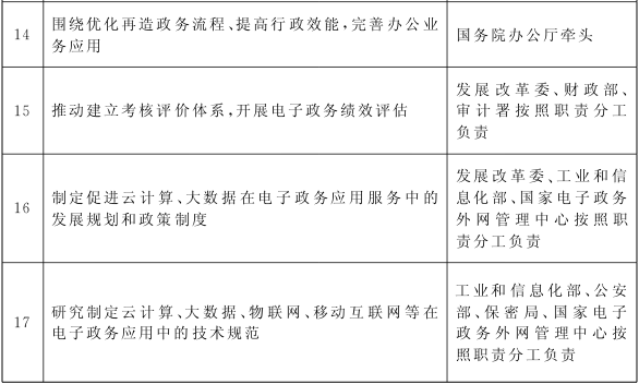電子政務(wù)的成效在于應(yīng)用,各地區(qū)各部門要把提高應(yīng)用成效擺在突出位置。國(guó)務(wù)院各部門要圍繞國(guó)務(wù)院中心工作,帶頭推進(jìn)應(yīng)用深化,重點(diǎn)提升電子政務(wù)對(duì)政府決策和管理的信息化支撐保障水平。各地方政府要結(jié)合實(shí)際,因地制宜推動(dòng)電子政務(wù)在重點(diǎn)領(lǐng)域的應(yīng)用,著力提升社會(huì)管理和公共服務(wù)水平。
