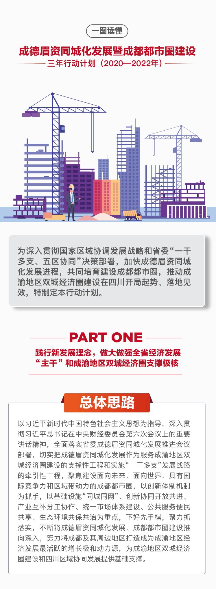 為深入貫徹國家區(qū)域協(xié)調(diào)發(fā)展戰(zhàn)略和省委“一干多支、五區(qū)協(xié)同”決策部署,加快成德眉資同城化發(fā)展進(jìn)程,共同培育建設(shè)成都都市圈,推動(dòng)成渝地區(qū)雙城經(jīng)濟(jì)圈建設(shè)在四川開局起勢、落地見效,成德眉資同城化發(fā)展領(lǐng)導(dǎo)小組正式發(fā)布了《成德眉資同城化發(fā)展暨成都都市圈建設(shè)三年行動(dòng)計(jì)劃(2020-2022年)》(以下簡稱《行動(dòng)計(jì)劃》)。這期我們將帶您一圖了解《行動(dòng)計(jì)劃》的詳細(xì)信息。