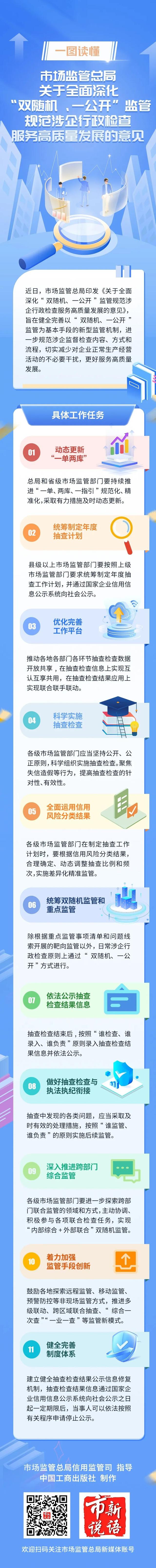 市場(chǎng)監(jiān)管總局近日印發(fā)《關(guān)于全面深化“雙隨機(jī)、一公開(kāi)”監(jiān)管規(guī)范涉企行政檢查服務(wù)高質(zhì)量發(fā)展的意見(jiàn)》(以下簡(jiǎn)稱《意見(jiàn)》),旨在健全完善以“雙隨機(jī)、一公開(kāi)”監(jiān)管為基本手段的新型監(jiān)管機(jī)制,進(jìn)一步規(guī)范涉企監(jiān)督檢查內(nèi)容、方式和流程,持續(xù)提升協(xié)同監(jiān)管能力,更好服務(wù)高質(zhì)量發(fā)展。