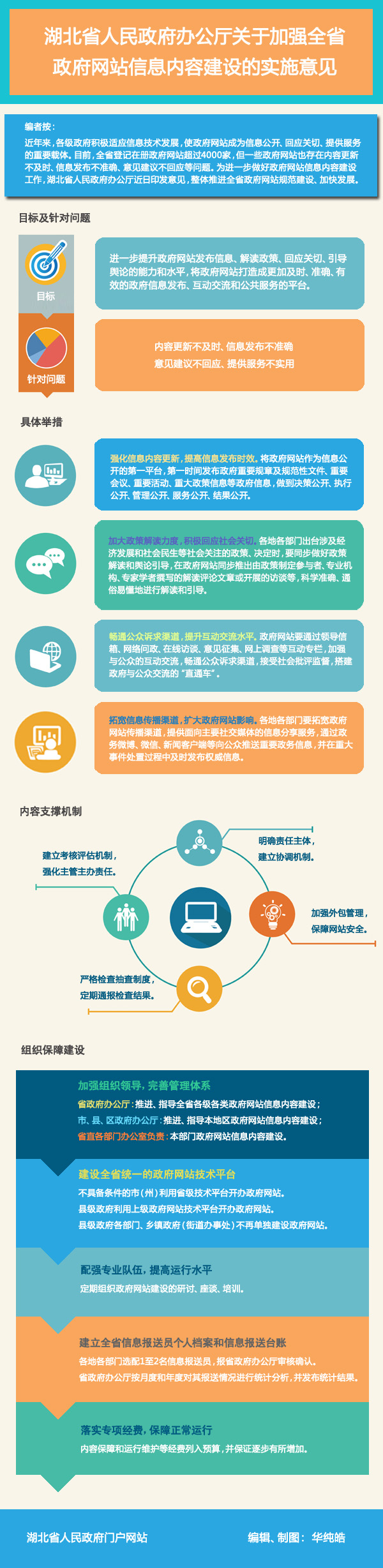 圖解:湖北省政府網(wǎng)站信息內(nèi)容建設(shè)實(shí)施意見 2015-05-21 10:05 來源: 人民網(wǎng) 查看: 次 分享11 0 標(biāo)簽 政府網(wǎng)站 湖北 信息內(nèi)容建設(shè) 責(zé)任編輯:admin