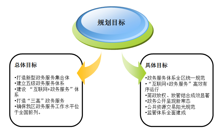 為提高我區(qū)政務(wù)服務(wù)水平,我區(qū)十三五規(guī)劃的總體目標是從自治區(qū)、市、縣(市、區(qū))到鄉(xiāng)鎮(zhèn)(街道)、村(社區(qū))村(社區(qū))五個不同級別的行政區(qū)劃入手,建設(shè)和完善“高標準、高品質(zhì)、高效能”的“互聯(lián)網(wǎng)+政務(wù)服務(wù)”體系,其功能包括政務(wù)公開、行政審批、公共服務(wù)等綜合服務(wù)。此總體目標的制定主要參照我區(qū)行政區(qū)域五級劃分和政務(wù)服務(wù)工作惠民需全面的實際情況,和此目標實踐并達成預(yù)期成效的可能性制定,較科學(xué)合理的明確了新時期、“新常態(tài)”下我區(qū)政務(wù)服務(wù)的努力方向和新型政務(wù)服務(wù)體系的提供的新型服務(wù),讓政府工作人員明確新的工作方向、內(nèi)容和工作目標。這一總體目標符合我區(qū)黨政機關(guān)始終堅持黨全心全意為人民服務(wù)的宗旨,建設(shè)服務(wù)型、創(chuàng)新型政府的理念,真正為人民辦實事和改善民生的決心。