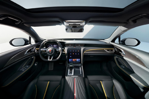 外觀驚艷,內(nèi)飾也相得益彰。紅旗H6內(nèi)飾采用以駕駛者為中心的紅旗經(jīng)典環(huán)抱式架構(gòu),融入優(yōu)雅、科技、運動三元素。金盞黃加黑色配色內(nèi)飾、激進運動的桶式座椅,質(zhì)感豐富、細(xì)膩精湛,兼具高顏值和舒適感。
