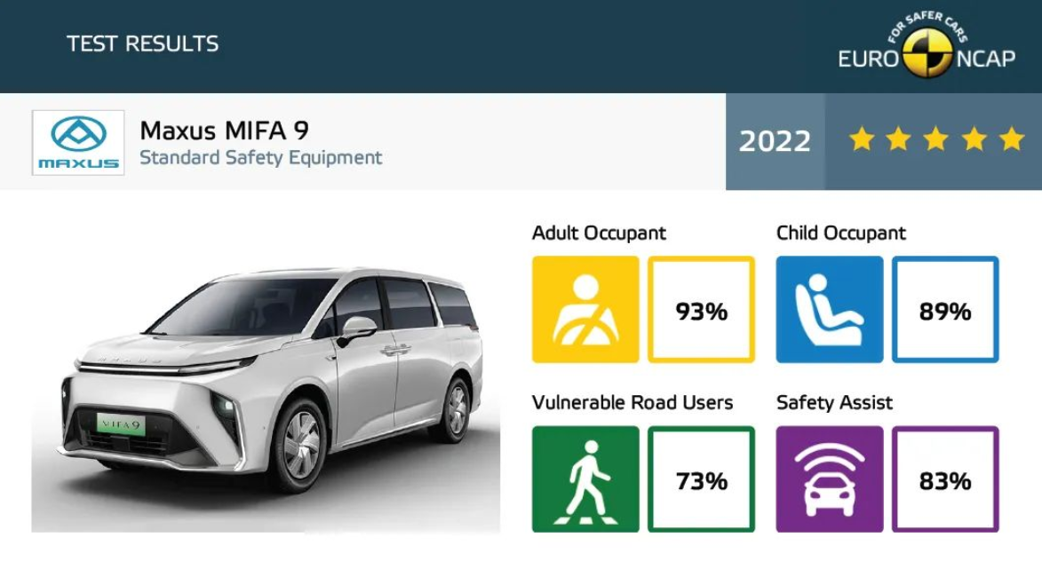 (上汽大通MAXUS MIFA 9斬獲Euro NCAP五星安全認(rèn)證)