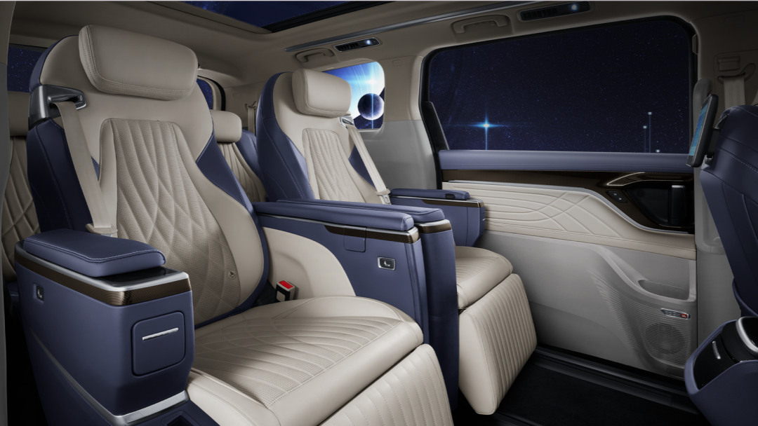 除了尺寸上的優(yōu)勢,上汽大通MAXUS G90的二排座椅還擁有電動(dòng)腰托、頭枕、伸縮腿托,以及加熱、通風(fēng)、按摩、一鍵聯(lián)動(dòng)模式等十二項(xiàng)電動(dòng)調(diào)節(jié),還搭載了液晶扶手屏以及隱藏小桌板。三排也配備了兩個(gè)獨(dú)立電動(dòng)座椅,支持加熱、通風(fēng)、按摩、腿托以及電動(dòng)調(diào)節(jié)功能,并配備了專屬USB接口、空調(diào)出風(fēng)口,讓每一位乘客都有“VIP”的尊貴乘坐體驗(yàn)。