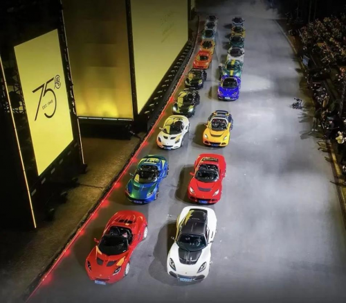 在此次75周年品牌日活動上,路特斯三款全新車型——Emira、Eletre、Evija,與路特斯經(jīng)典車型Evora、Exige、Elise、007經(jīng)典傳奇座駕Esprit首度集結(jié),引擎發(fā)出陣陣轟鳴令人心潮澎湃,極具辨識度的車身及引人矚目的色彩徹底點亮了那個夜晚的上海賽車場。