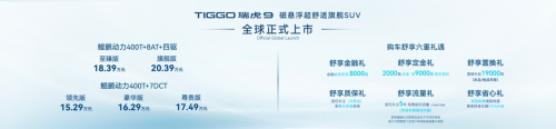 5月30日,奇瑞汽車重磅打造的TIGGO瑞虎9正式全球上市,共推出領(lǐng) 先版、豪華版、尊貴版、至臻版、旗艦版5款車型,官方指導(dǎo)價15.29-20.39萬元。針對購車用戶特推出6重驚喜,為用戶帶來買無憂、用無憂、養(yǎng)無憂的全新價值體驗。