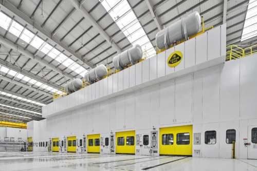 沖壓車間采用全球先進(jìn)的五序全自動伺服沖壓設(shè)備,可實現(xiàn)更為復(fù)雜造型沖壓件的制造,零件成型更充分,從根本上保證了零件的尺寸精度和車身造型線條的一致性,滿足路特斯對于極致空氣動力學(xué)復(fù)雜設(shè)計的制造需求。全自動沖壓線的首臺壓機(jī),擁有高達(dá)2500噸的沖壓壓力,達(dá)到目前行業(yè)最 大壓力水平,讓復(fù)雜造型也能充分塑型,讓每一個風(fēng)道,都極致精細(xì)。