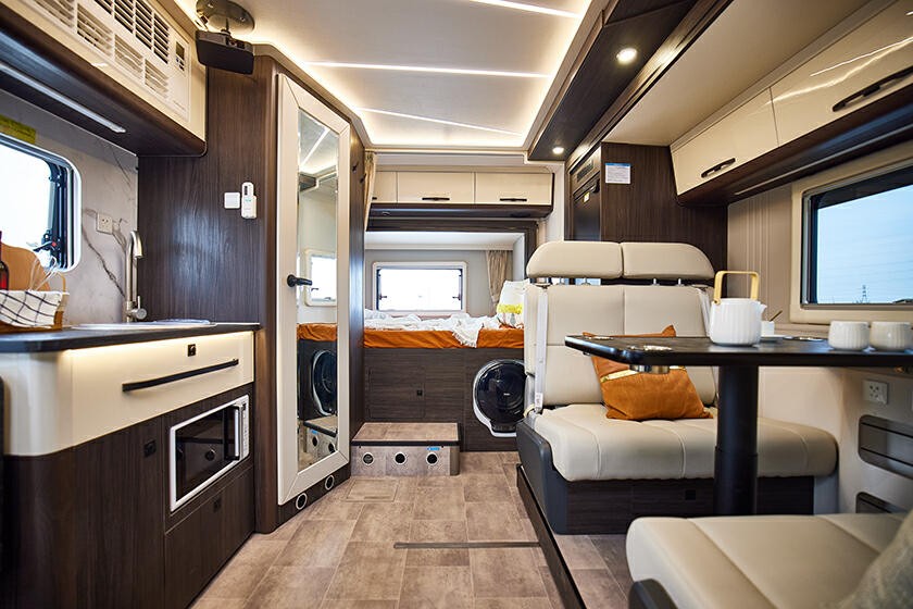 就基本的生活需求來看,不論是宇通C530還是上汽大通MAXUS生活家H90都可輕松滿足。前者擁有電磁爐、微波爐、冰箱、獨立衛(wèi)生間、10kW大功率暖風系統(tǒng)、直流變頻空調(diào)等設施,日常烹飪、梳洗等;上汽大通MAXUS生活家H90擁有整體櫥柜、戶外廚房、微波爐、冰箱、獨立衛(wèi)生間、洗衣機、飲水機、乳膠復合床墊等設備,還可選裝電動遮陽棚、客廳MAX電動換氣扇、新風換氣系統(tǒng)、投影儀+幕布+四個JBL喇叭等,在解決房車旅行中的生活需求基礎上,還可帶來滿滿的精致感與舒適感。生活家H90雙拓還提供了“意式風”與“極客風”兩種內(nèi)飾風格供選擇。