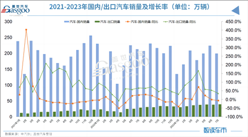 根據(jù)“中汽協(xié)”數(shù)據(jù),2023年7月,中國(guó)汽車出口39.2萬(wàn)輛,出口規(guī)模再創(chuàng)歷史新高;前7個(gè)月,中國(guó)汽車?yán)塾?jì)出口253.3萬(wàn)輛,同比增長(zhǎng)67.9%。其中,傳統(tǒng)燃油汽車出口量為189.7萬(wàn)輛,同比增長(zhǎng)51.5%;新能源汽車出口63.6萬(wàn)輛,同比增長(zhǎng)1.5倍,出口增勢(shì)強(qiáng)勁。