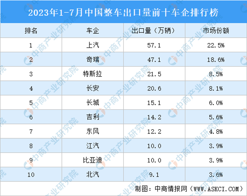 與上年同期相比,比亞迪出口10萬(wàn)輛,同比增長(zhǎng)7.9倍;奇瑞出口47.1萬(wàn)輛,同比增長(zhǎng)1.4倍;長(zhǎng)城出口15.1萬(wàn)輛,同比增長(zhǎng)94.7%。