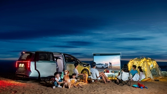 續(xù)航方面,這款車采用了新一代E2架構(gòu)高效電驅(qū),搭載上汽集團90kWh魔方電池及高階BMS,CLTC續(xù)航里程高達605km,讓用戶免于里程焦慮,隨心暢行。另外,大家7還支持電動車中最 高6.6kW的V2L車外放電功能,以及最 大2.2kW的車內(nèi)V2L放電,打造更為多元豐富的用車場景。戶外露營時,和家人好友在星空下品著咖啡,看場電影,開啟愜意的用車生活。