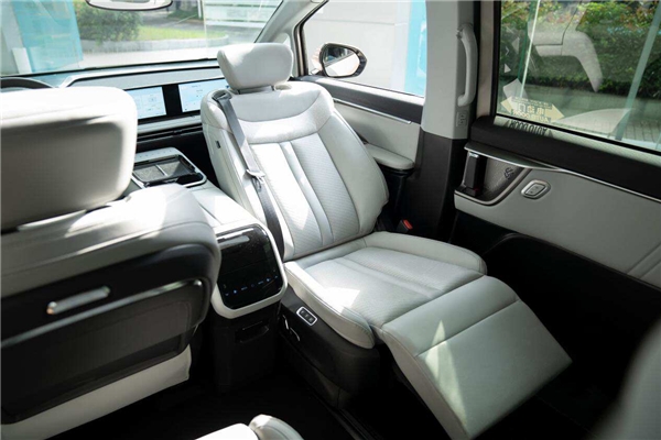 車身尺寸上,G70達到4900*1885*1756mm,軸距2960mm,領 先同級車型。在座椅布局上,除了2+2+3七座版本,還提供了2+1+3座椅布局的6座版本。進入車內(nèi),諸多設計更顯廠商巧思妙想。該版本的副駕座椅,支持180°旋轉(zhuǎn),還可通過長約2米的滑軌進行前后移動。如此設計,在同級產(chǎn)品中算得上獨一份,既提升了便利性,又顯得趣味十足。同時,這款MPV二排空間很寬敞,且座椅可實現(xiàn)6向電動調(diào)節(jié)。再加上椅背角度可調(diào)(72°~126°)的三排座椅,令每一位乘客都能輕松自在地找到舒適坐姿。2X2矩陣立體發(fā)泡座椅采用Nappa真皮包裹,進一步提升舒適性。全車共有45處儲物空間,還配有豐富的充電口、杯托和小桌板,便利性極強。