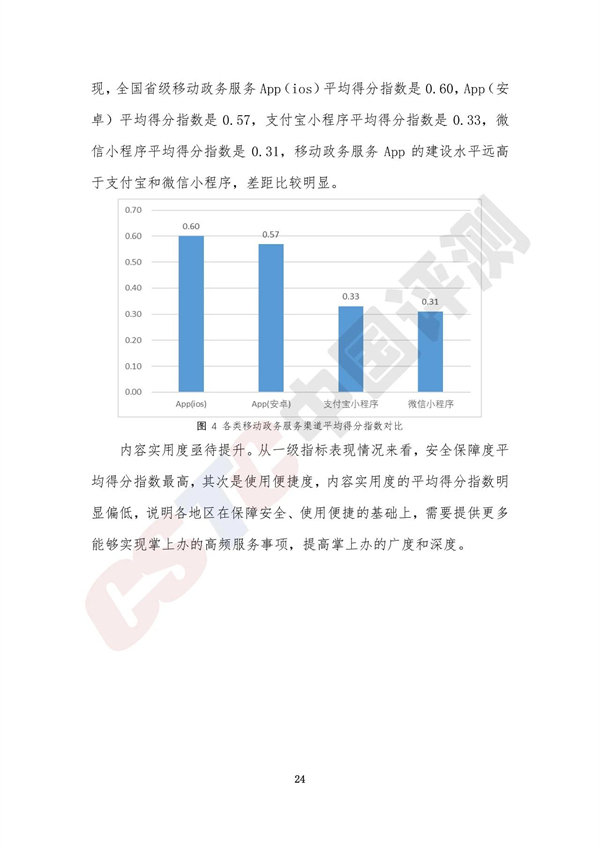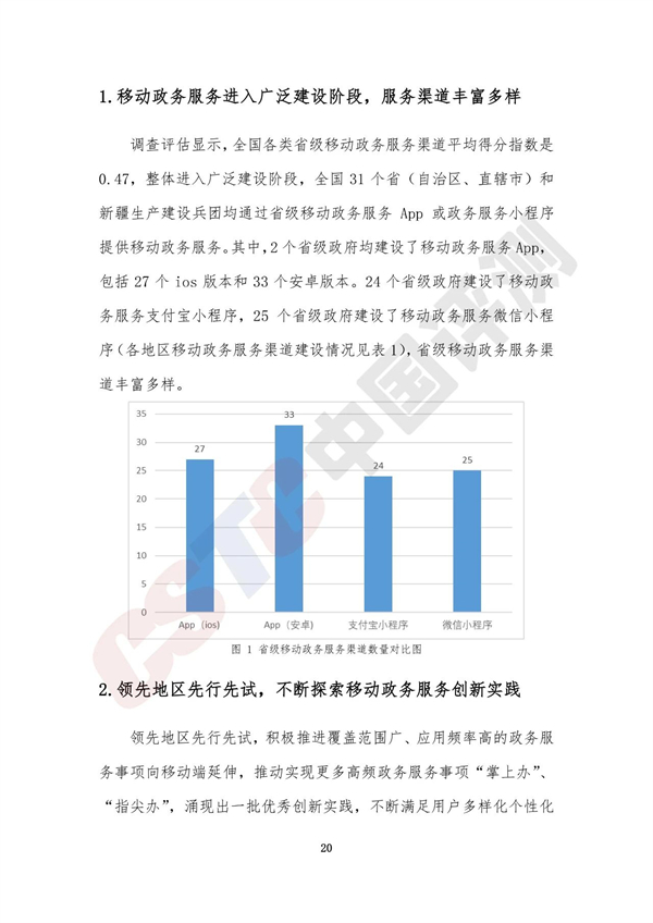 調(diào)查評估顯示,全國各類省級移動政務(wù)服務(wù)渠道平均得分指數(shù)是0.47,整體進(jìn)入廣泛建設(shè)階段,全國31個?。ㄗ灾螀^(qū)、直轄市)和新疆生產(chǎn)建設(shè)兵團(tuán)均通過省級移動政務(wù)服務(wù)App或政務(wù)服務(wù)小程序提供移動政務(wù)服務(wù)。